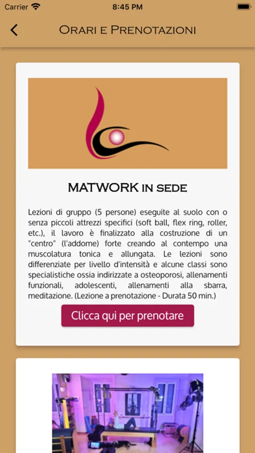 Scarica subito l’APP ufficiale de Il Centro Pilates per essere sempre aggiornato sulle attività, gli orari e le disponibilità delle lezioni. Il Centro Pilates propone discipline quali : Pilates Matwork, Reformer e Studio. Puoi consultare il calendario degli appuntamenti delle lezioni tematiche direttamente dal tuo iPhone: è l’ideale per organizzare i tuoi allenamenti personalizzati e mantenerti in forma.