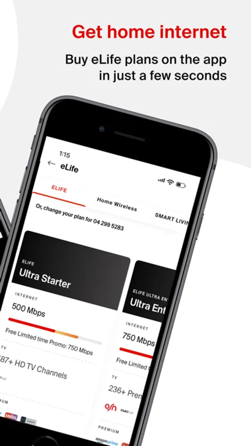 Connect to a world of entertainment and get free 24-hour installation when you shop our eLife plans. Get ultra-fast fiber internet with up to 1G speed, 300+ TV channels, unlimited local calling within UAE, premium gaming access, free subscription for Amazon Prime, STARZPLAY, Anghami & much more. Manage your bill payments, subscription activation, request eLife relocation or upgrade your eLife plans right here on the My Etisalat UAE app.