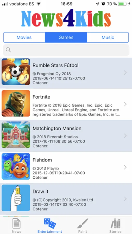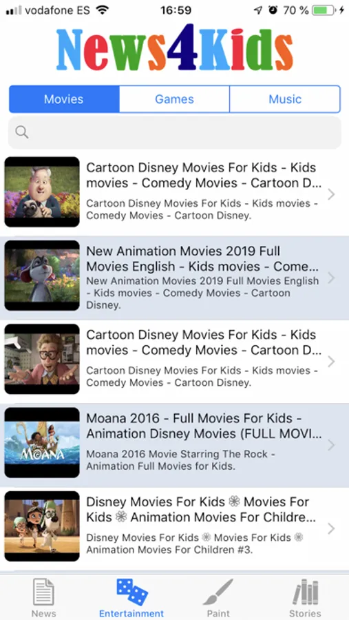 Magazine entirely made for children where they can read news, watch videos, play free games, make their own paintings and read fables.