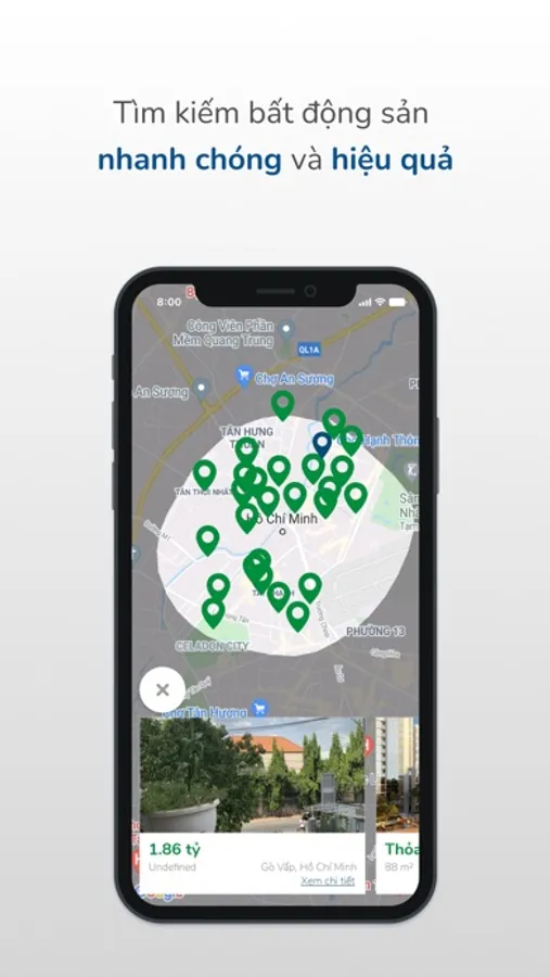 Batdongsan app là ứng dụng tiện lợi giúp bạn tìm kiếm miễn phí, nhanh chóng, đầy đủ và chính xác mọi thông tin về bất động sản trên toàn lãnh thổ Việt Nam.
