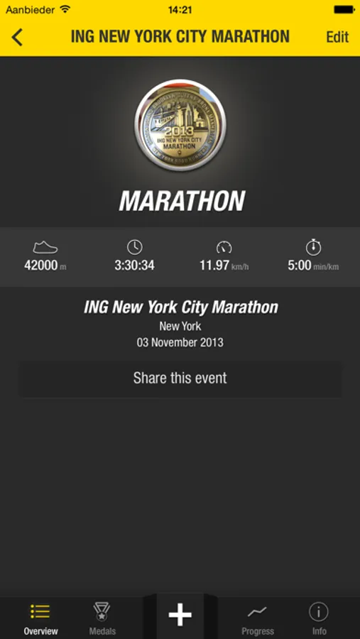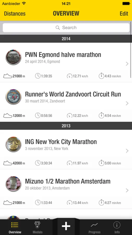 With the My Medals app you have a beautiful overview of all your personal race results in your pocket.