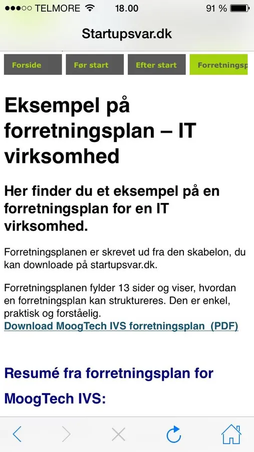 Startupsvar opdaterer indholdet fra en hjemmeside så indholdet i appen kommer fra denne hjemmeside.