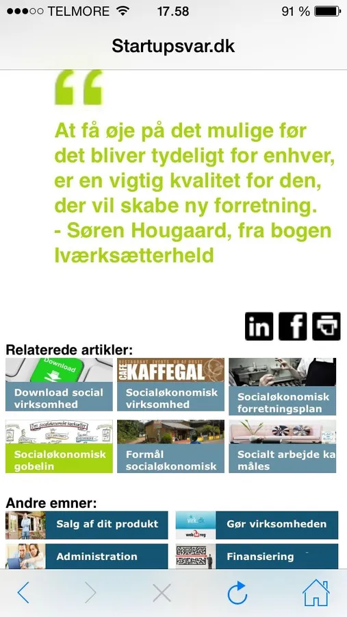 Startupsvar er et opslagsværk for iværksættere. Den giver svar på de 100 oftest stillede spørgsmål man har, når man starter eller driver en mindre virksomhed.