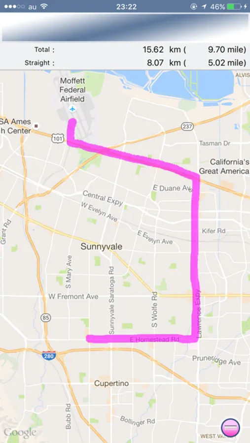 "Distance Measurement" is the application that can measure distance by tracing on the map with your finger.