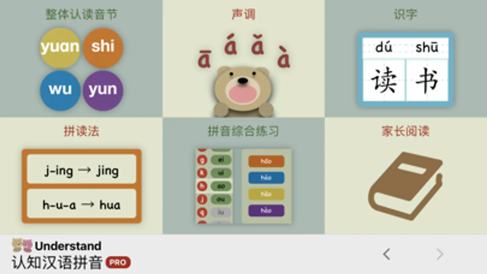 Understand 认知汉语拼音是一款儿童学习应用,全新的设计理念更加符合儿童的学习特点和认知规律,是儿童开始学习拼音、认识汉字的最佳选择。