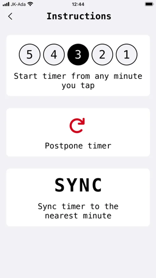 Start the countdown from any minute and sync to the nearest minute at any time.