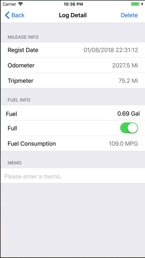 And fuel consumption can also be managed on the log detail screen.