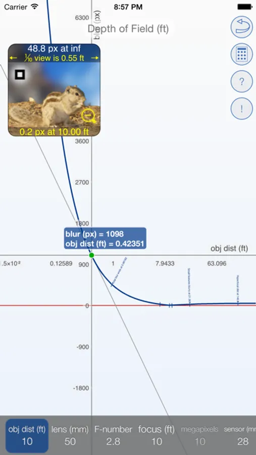 Hyperfocal is an advanced interactive calculator for depth of field and blur which goes beyond just the figures and provides a simulation of what the picture might look like at the given camera settings.