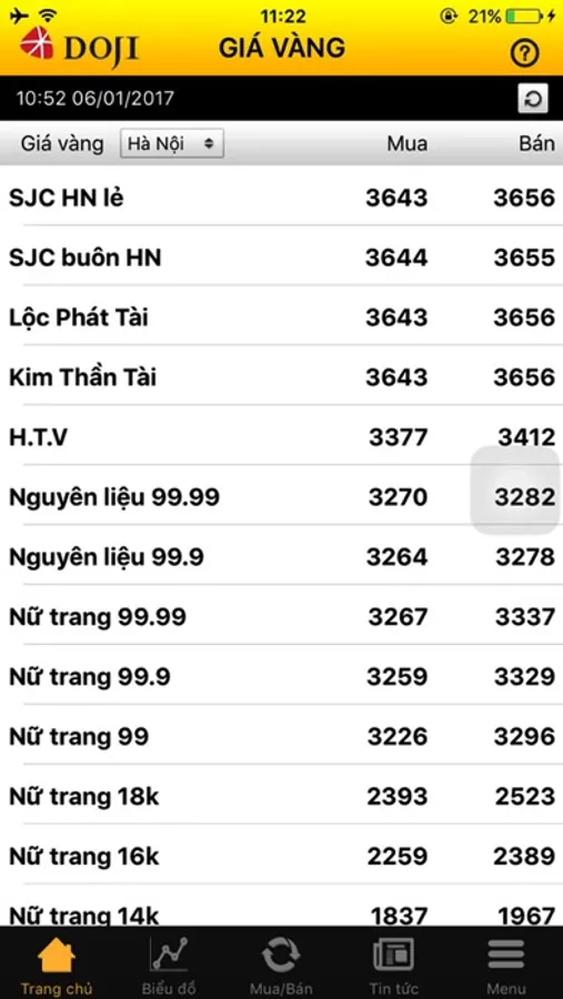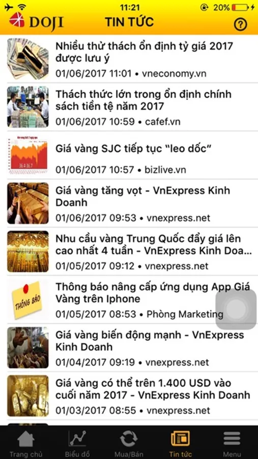 Giá vàng DOJI App: Ứng dụng do Tập đoàn VBĐQ DOJI phát triển, cho phép khách hàng nắm bắt giá vàng và tình hình thị trường ngay trên di động, bao gồm: