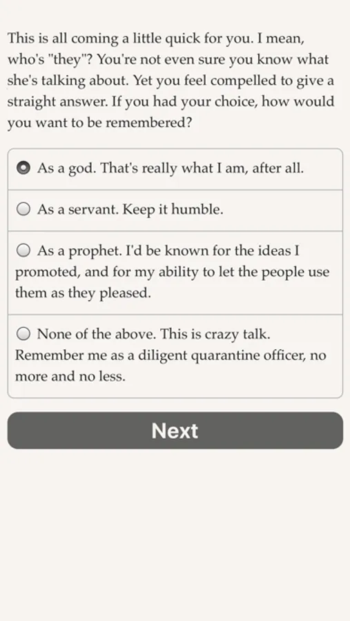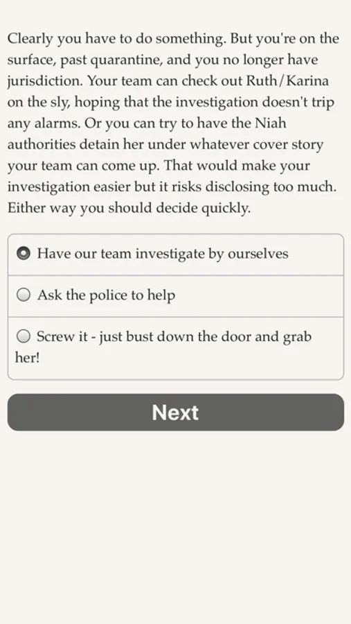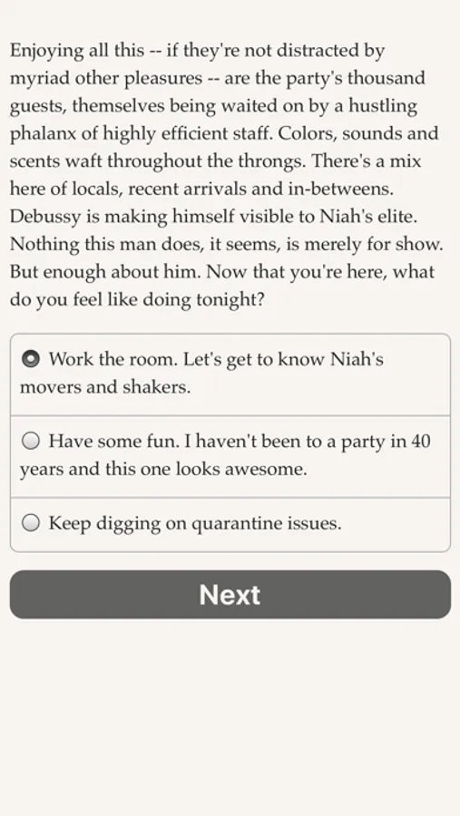 You're a quarantine agent—an extrajudicial representative of the law who lets only approved people and products leave Earth—and in a few days your starship will be arriving as your new home world. A dead passenger, a mysterious society, and a potential threat to interstellar civilization all await you. Solve the case and save the world. Build your life while building society. Explore this richly intricate game where new surprises await you each time you play!