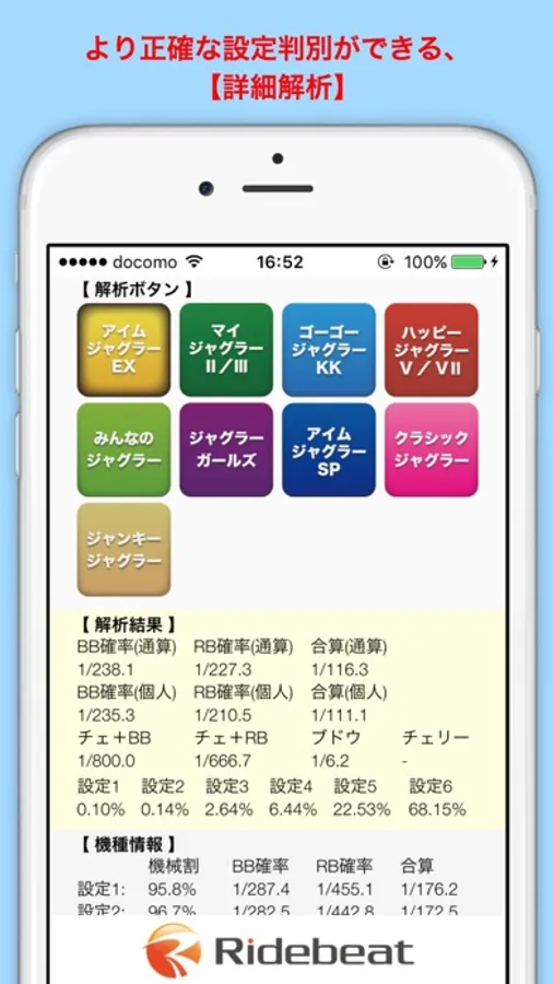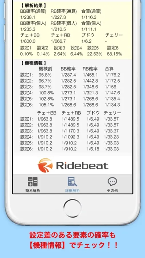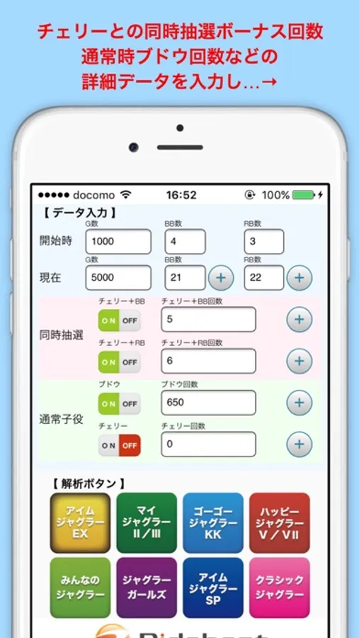 チェリーとの同時抽選、通常時ブドウ確率を考慮した解析が可能です。