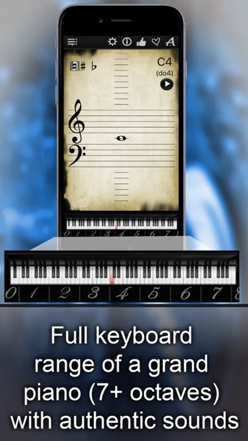 2. Full keyboard range of a grand piano (7+ octaves, 88 keys) with authentic sounds;