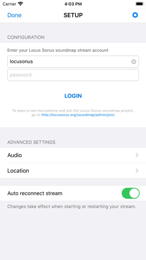 This app for IOS allows you to stream easily a mono or stereo oggvorbis stream to the locustream soundmap from your iPhone and/or your iPad device. It will automatically locates your stream on the map using GPS.
