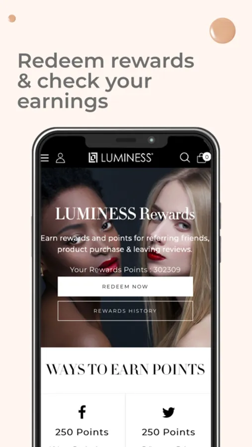 - Access your LUMINESS Rewards account to view current status and points balance.