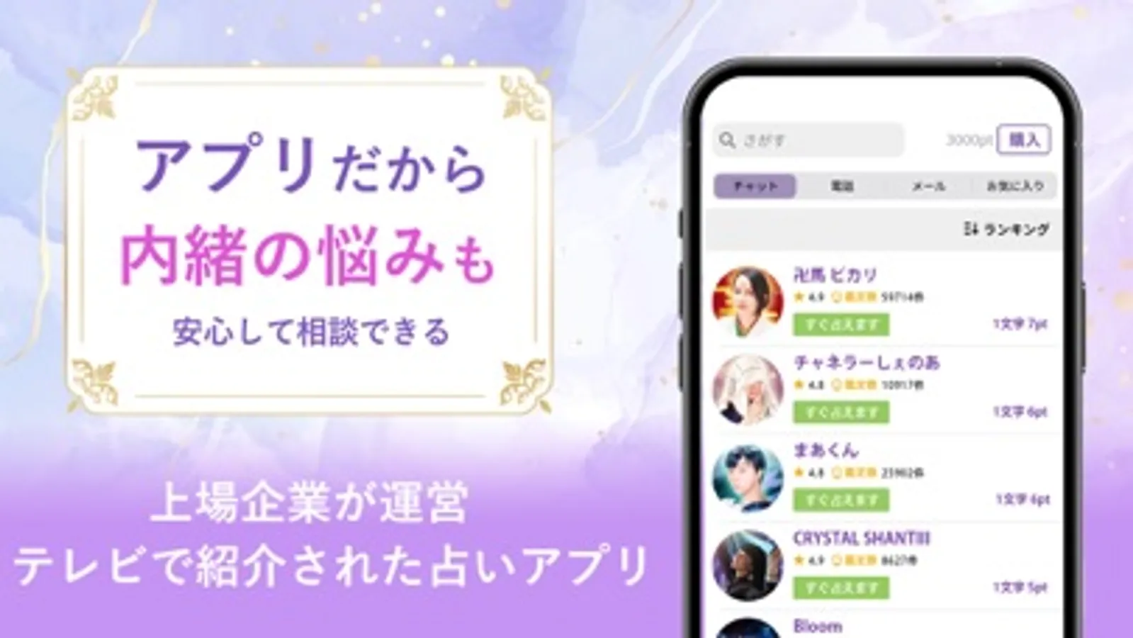 ・チャットやメール、電話など気分に合わせて占える・相談できる!
