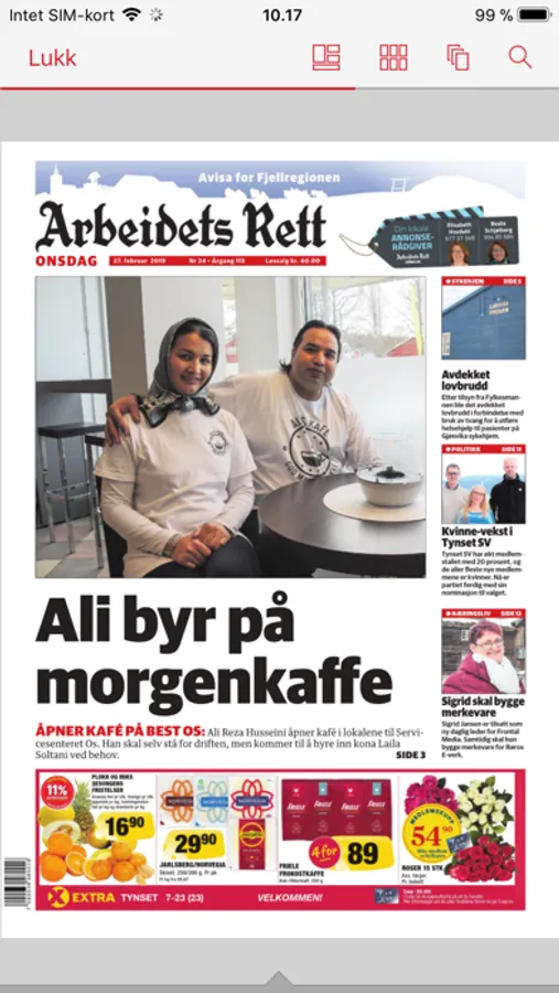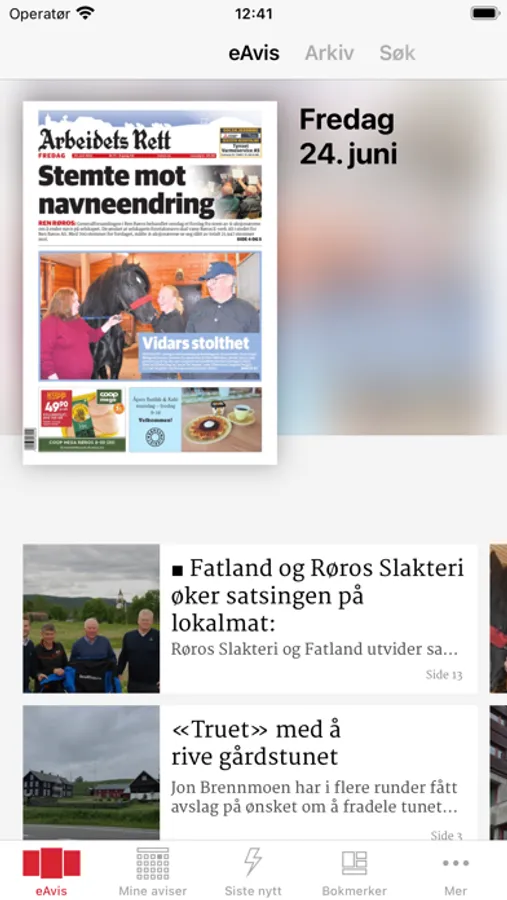 Applikasjonen er gratis å laste ned, og det er inkludert gratis eksemplarer som du kan lese før du må registrere deg. Applikasjonen er integrert med vår eAvis på web og vi tilbyr både løssalg og abonnement. Applikasjonen gir deg tilgang til både innhold fra den trykte utgaven og innhold publisert i vår nettutgave.