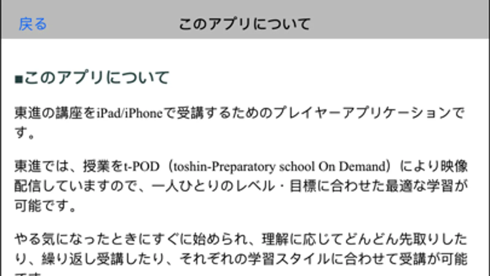 東進の講座をiPad/iPhoneで受講するためのプレイヤーアプリケーションです。