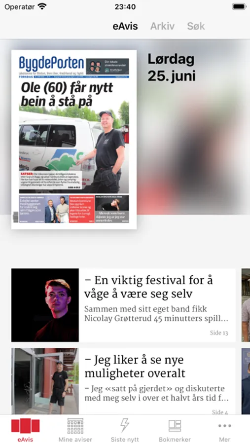 Bygdeposten for mobil og nettbrett.