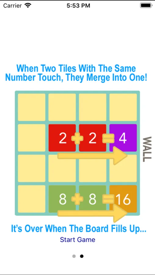 Swipe to move all tiles. When two tiles with the same number touch, they merge into one.