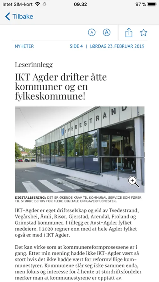 Tvedestrandsposten for mobil og nettbrett.