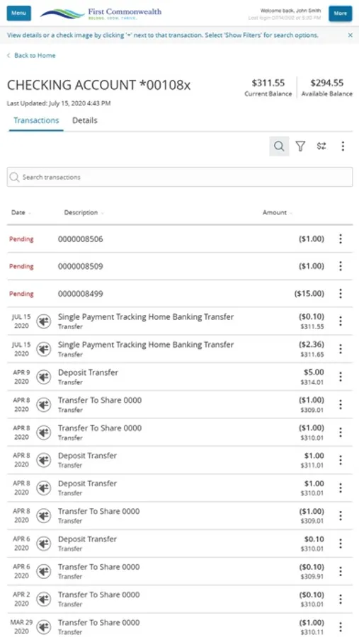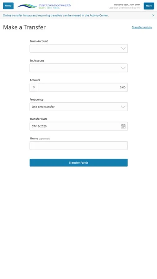 o Transfer money between your First Commonwealth account and outside financial institutions