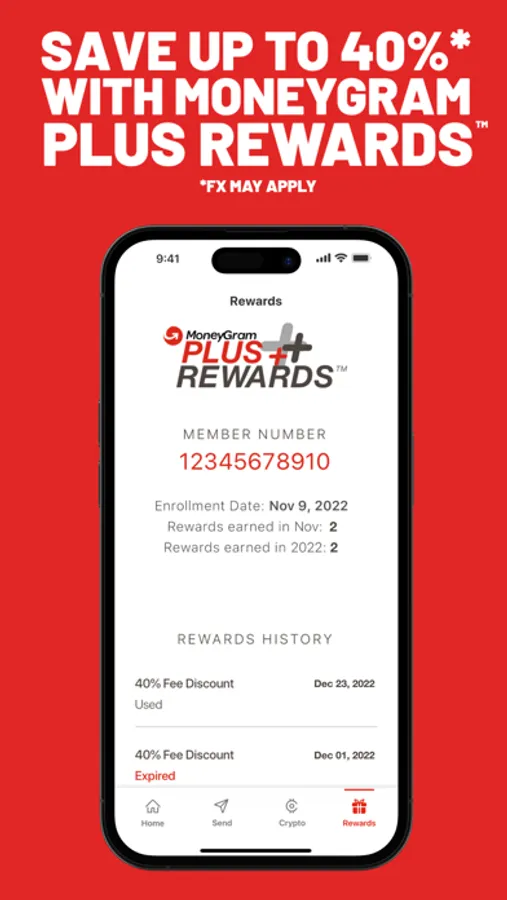 Earn up to 40% off future money transfers when you join MoneyGram Plus Rewards! The more often you send, the more rewards you get when you join our no-cost loyalty program. Check out our top member benefits: