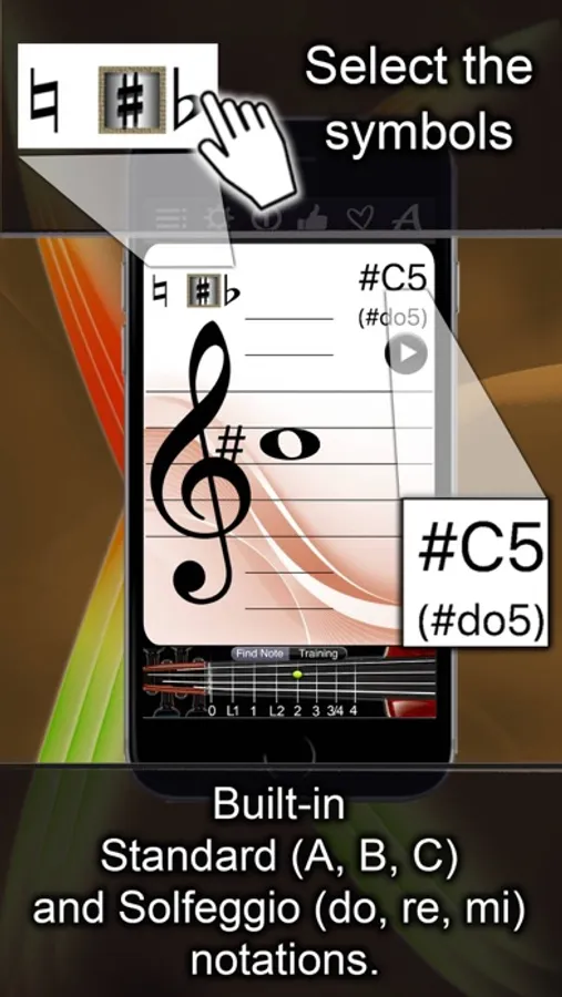 3. Built-in note sign ages: standard (A, B, C) as well as solfeggio (do, re, mi).