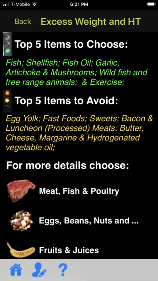 • ACTIONABLE information on what is good, what is bad, and what is neutral for your condition(s). We single out specific food items, and give you an ordered list of helpful and harmful foods within each food group.
