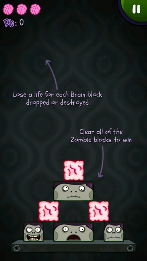 The best Zombie puzzle game around! Challenge your logical mind and reaction time all at once in this funny, gravity-based physics puzzler. The objective? It's simple: destroy the Zombies, and don't let any of the Brains fall off the platform. Be quick about it, but watch where you're tapping, or else you might squish a precious Brain or detonate a Bomb!