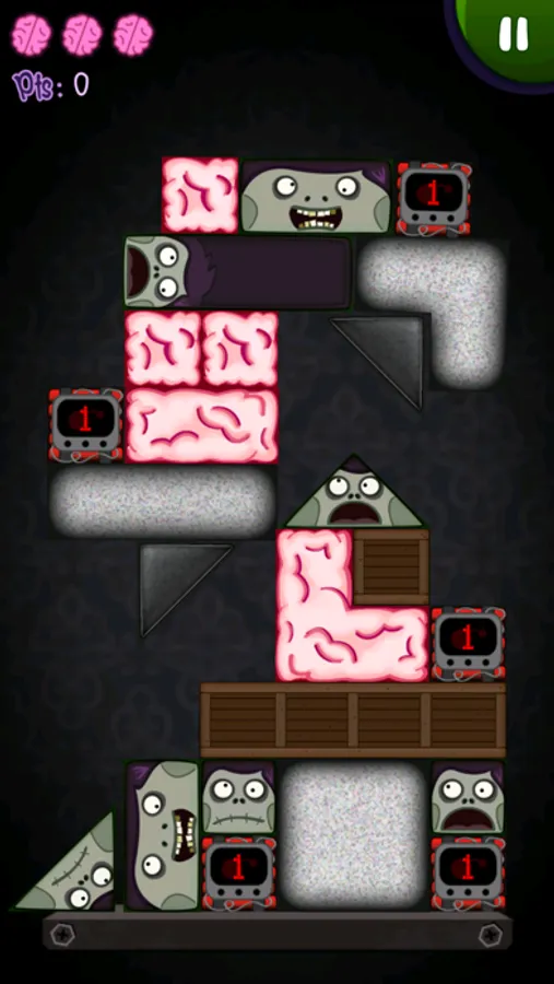 ● A variety of block types, including Zombies, Brains, Crates, Bombs, and more.