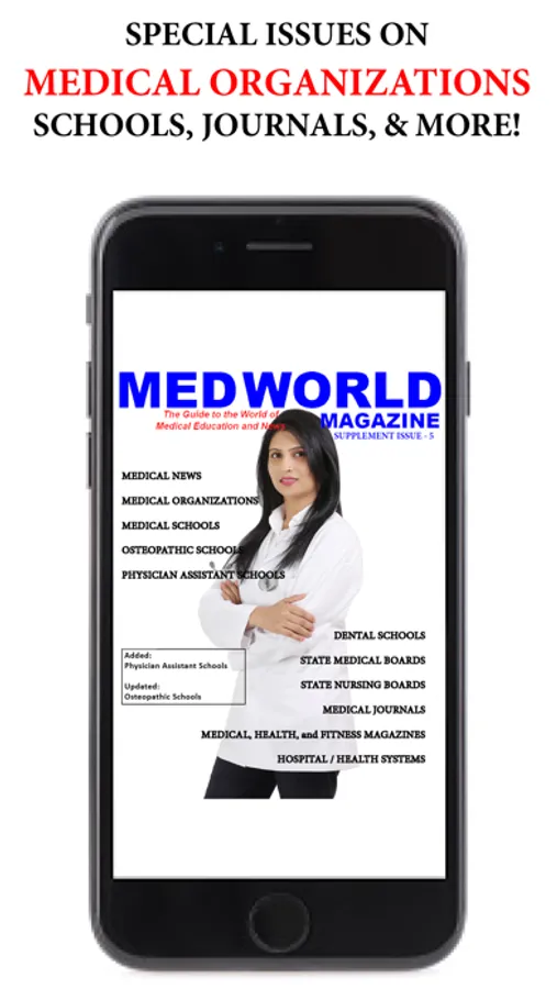 Med World Magazine (formerly "The Incredible Medical School Magazine") provides information and news on medical education. Also included are articles on a variety of subjects that are taught in medical school. There are occasional extra issues.