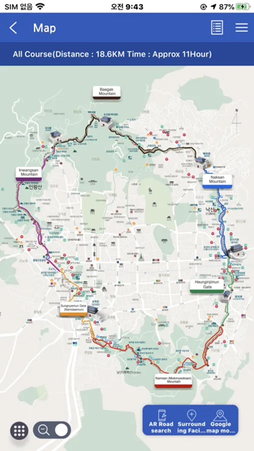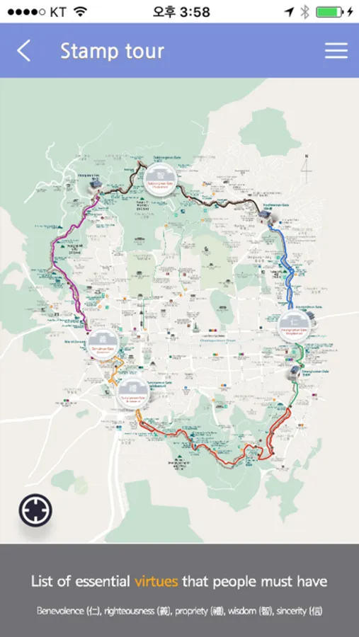 The Seoul City Wall app provides multimedia contents regarding Seoul City Wall, which is divided into a total of 6 sections including Baegak, Naksan, Namsan (Mongmyeoksan) and Inwangsan mountains as well as Heunginjimun and Sungnyemun gates, where the city wall has been demolished and buried.