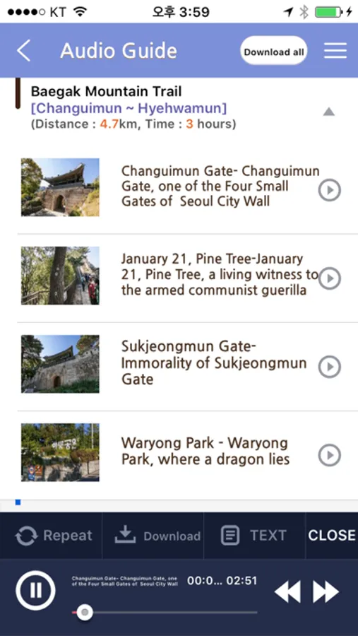 3. Audio Guide Service: You can listen to narrated stories about Seoul City Wall.