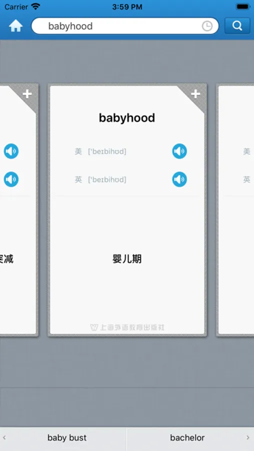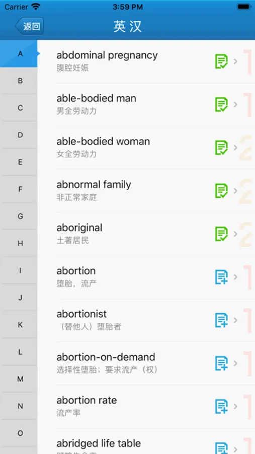 外教社官方权威正版发布,其他同名人口学词汇手册均为盗版。《外教社英汉汉英人口学词汇手册》是由上海外语教育出版社发行的词汇词典类软件,软件收录了人口学基本词汇(英汉、汉英双向收词10000余条),是人口学专业必备手册。本软件由海笛科技提供产品支持,具备手机上最便捷的查词功能(摄像头查词、语音查词等),还有清晰发音、生词收藏、生词辅助记忆等学习功能。选择高品质词典和词汇手册,学习更有保障!