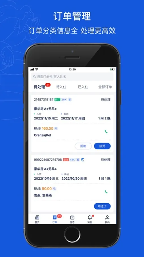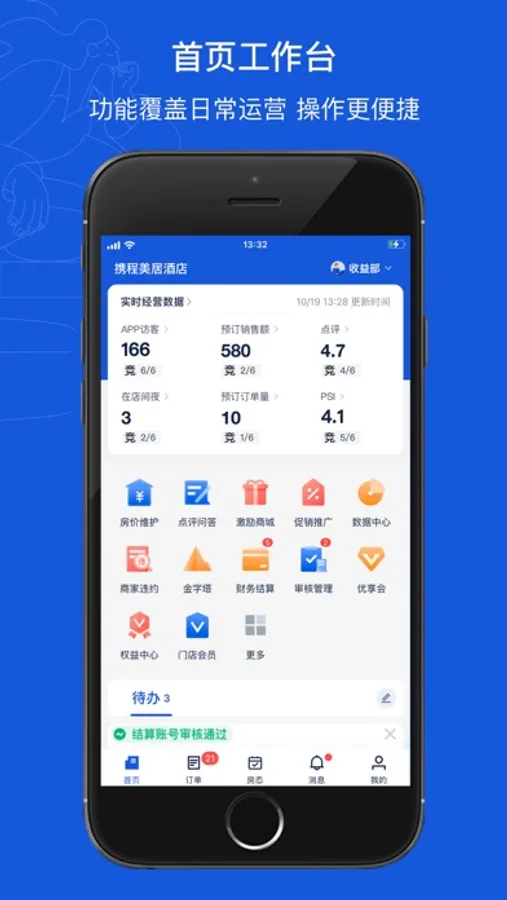 eBooking (mobile version), as an intelligent terminal for mobile application, launched by Ctrip on April 22, 2014, is designed to provide a convenient back-end management service for hotels. Currently, the “Booking”, “Inventory” and other key functions are available.