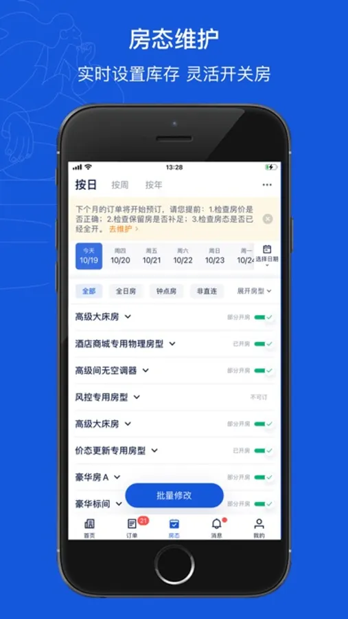 - View the daily inventory by room type in calendar