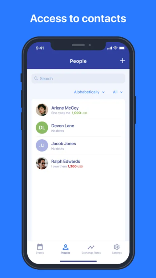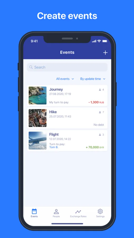 You can create an event (for instance, “Holidays in the Alps”) at Repay just in two clicks, and add friends so all the participants can track expenses and registers their transactions: “I’ve bought flight tickets for all”, “Peter paid for Elena”, “I gave money to a friend”, “Our advance money is paid back, let’s share”.