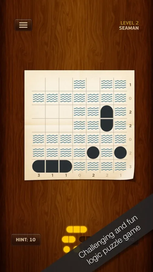 Your objective is to locate the hidden enemy ships on the map, using the given hints and the number indicators within the map. Test your mind in over 125 challenging levels.
