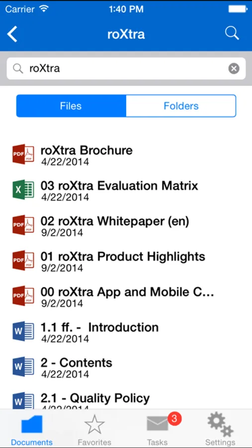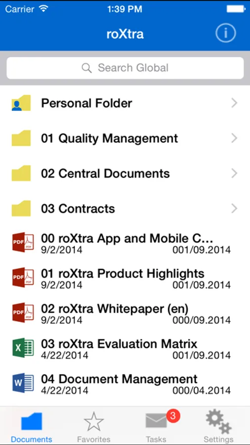 With the roXtra app you have mobile access to your roXtra system and become even more flexible in terms of your document management. You can easily access all documents directly from your mobile device and see all the stored details about documents and folders - during business trips, on the train or at a customer site. With the roXtra app, you can also manage your tasks and confirm roXtra reading tasks while on the go. You are always up to date and with the integrated search and your Favorites you always have the fastest possible access to all important documents in roXtra.