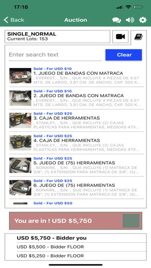 Lyon Mexico Bidding App Screenshots