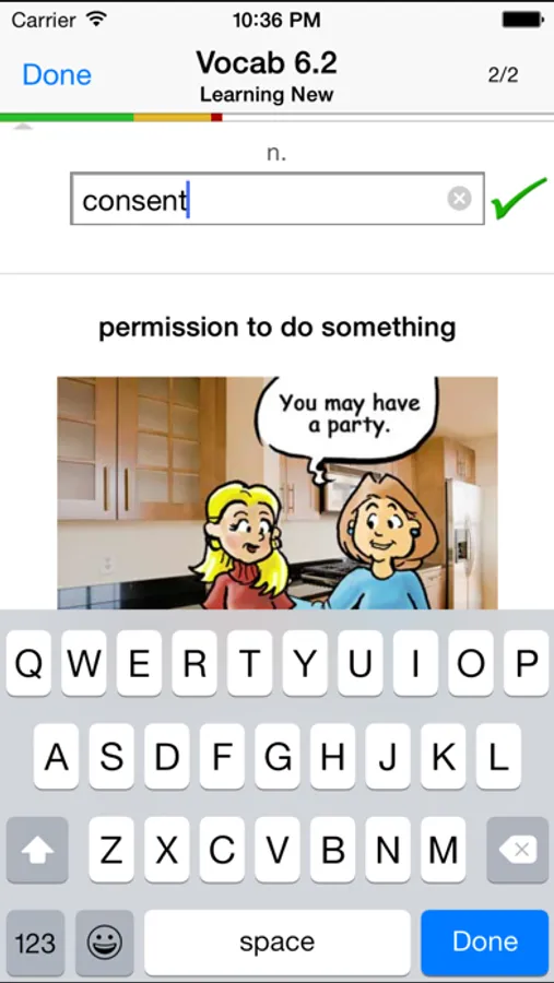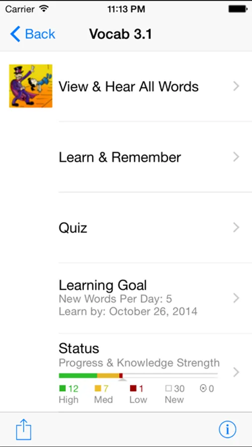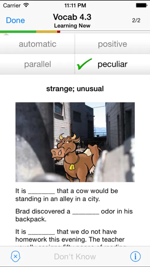 - Spaced Repetition: A scientifically proven method for optimal memory retention. The app keeps track of how well you've learned a word, and presents challenging words more frequently than others. It even suggests a time when you should drill again before you forget the words.