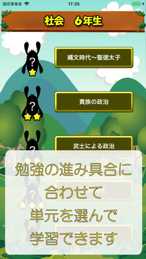 歴史や政治・憲法の問題など、6年生で学習する単元をすべてカバー。複数のアプリをインストールする必要はないオールインワンのアプリです。