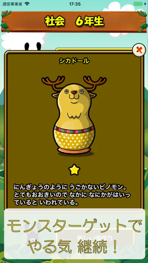 小学校6年生の社会アプリの決定版!学習の進み具合に合わせて単元を選択して、効率的に復習できます。4択のクイズ形式という使いやすさ、勉強のご褒美にモンスターを集めていく楽しさで、子供が継続的に勉強します。(iPad、iPhoneの両方に対応)