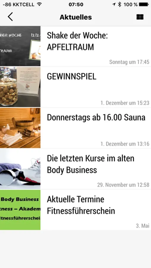 Alle News aus dem BodyBusiness können Sie jederzeit unterwegs lesen. Die wichtigsten Benachrichtigungen werden direkt auf Ihr Smartphone gepostet: So wissen Sie sofort, wenn es neue Kurse gibt und verpassen keine Special-Events mehr.