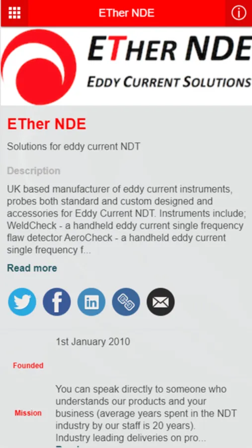 Solutions for Eddy Current NDT. This is the ETher NDE application about all things to do with Eddy Current non-destructive testing.
