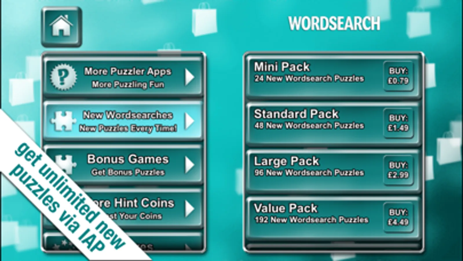 UNLIMITED PUZZLES - purchase any IAP pack as many times as you like and get unique new puzzles every time.