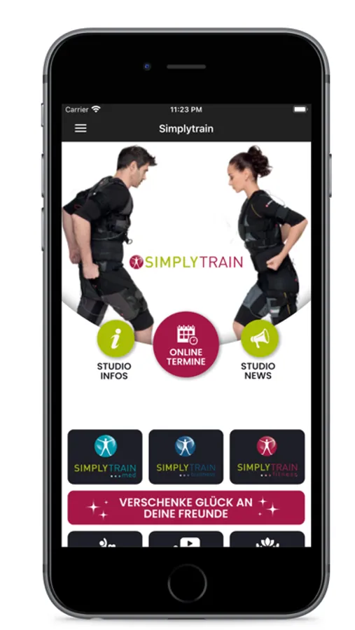 Mit der Simplytrain Fitness-App haben Sie Ihr Personal-Training-Studio immer dabei. Informationen wie z.B. den aktuellen Terminplan und laufende Angebote sind ständig aktuell und griffbereit!