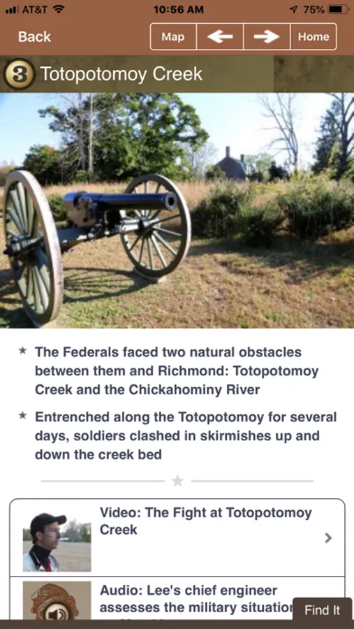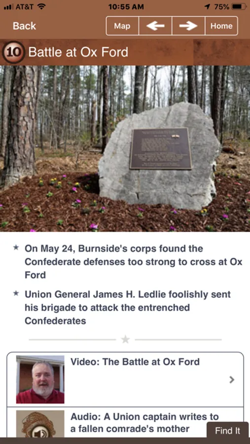 Click on our “virtual signs” to access a wealth of information related to the very location where you are standing. Onboard historian videos, audio accounts from soldiers and civilians, photos, facts, and more are just a click away. Never has so much information been made available in such a portable device!
