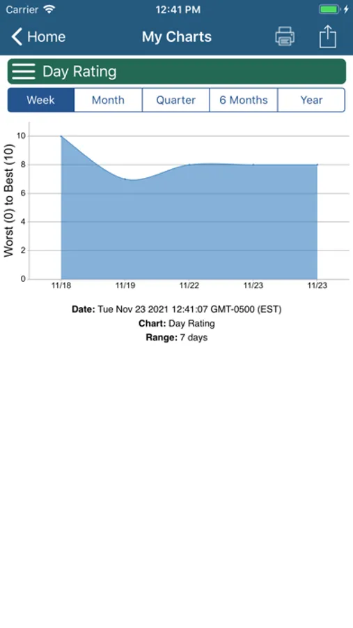 • Track your progress and symptoms by filling in the daily journal with its sliders and buttons and watch your data transform into easy-to-read charts
