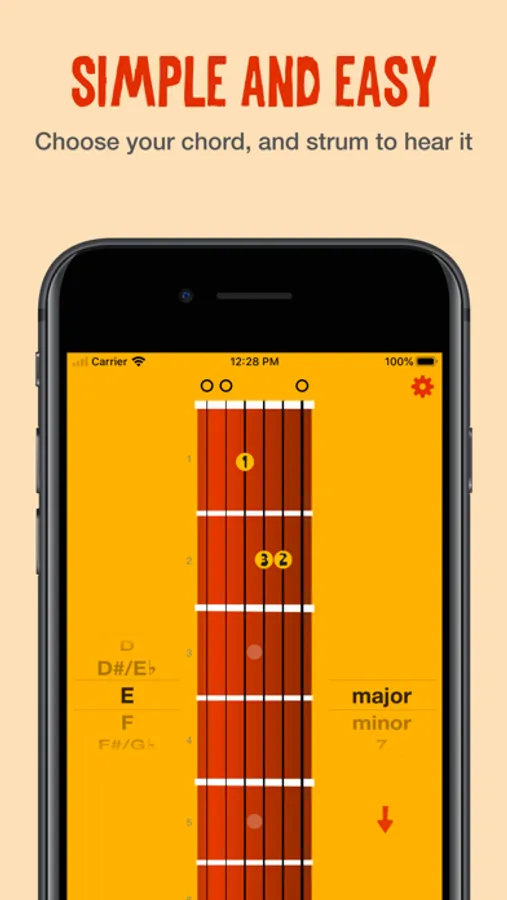 • Strum the chord to hear how it sounds, or strum individual strings to hear each note on its own.